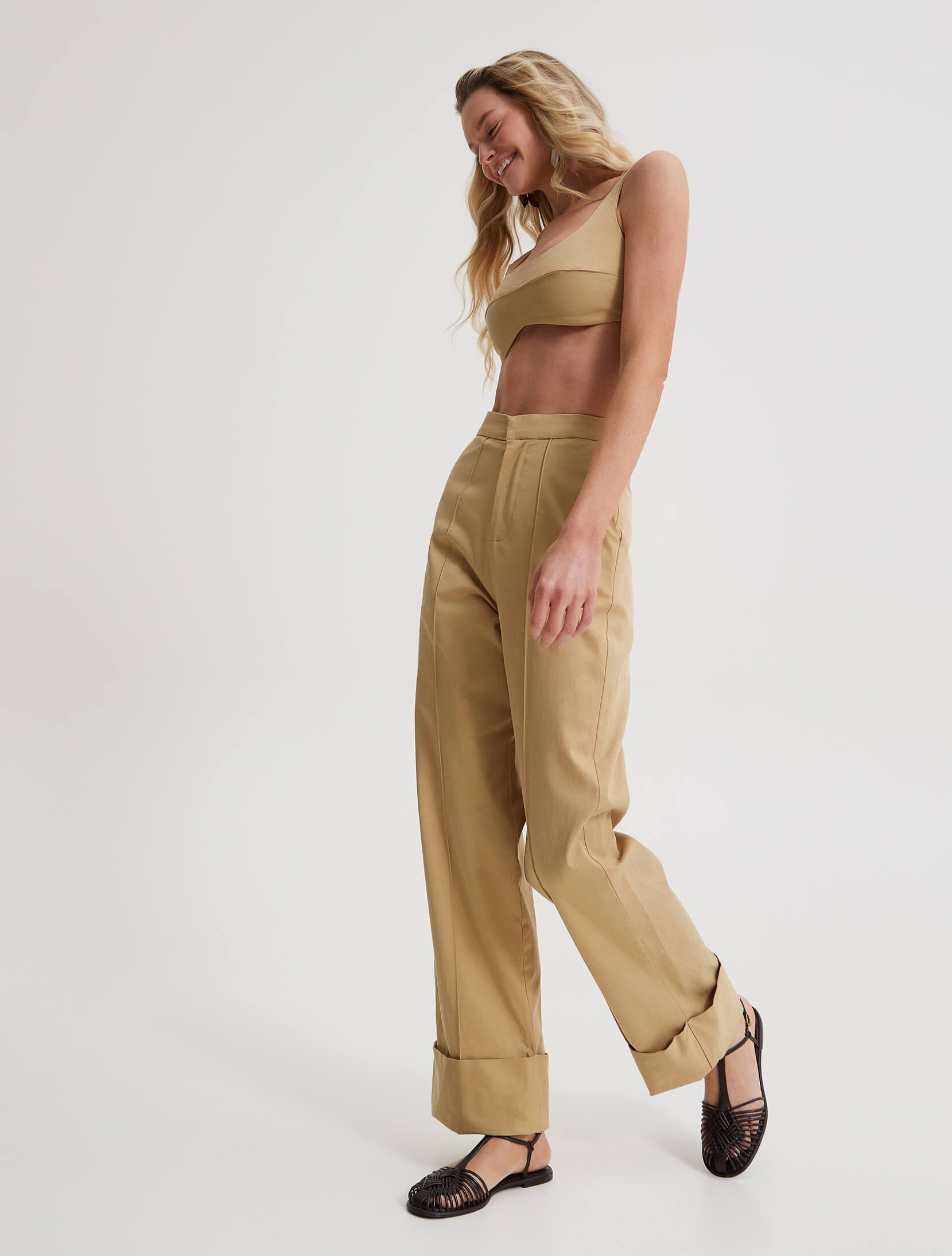 HIGH-WAISTED PANTS WITH FRILLS AND TURN-UPS